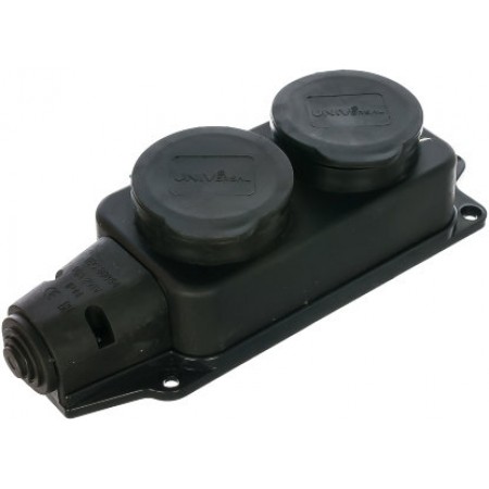 Բաշխիչ էլ. 2տեղ 16А 250В IP44 կաուչուկե, հողանցումով, կափարիչով Universal 1788