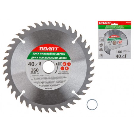 Սկավառակ սղոց 40 ատամ 160x20/16մմ Volat 88120-40