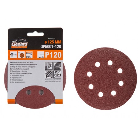 Շուշաթուղթ թերթով փայտի, անցքերով 125 մմ #120 Gepard GP5001-120
