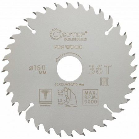 Սկավառակ սղոց փայտի 185x1.3/2.0x30/25.4/20/16 մմ 36Т Cutop Profi plus 75-18536Т