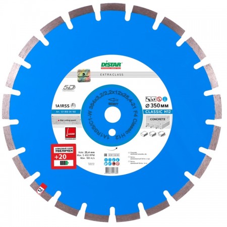 Սկավառակ ալմաստե 1A1RSS/C1-W 354x3.2/2.2x12x25.4-21 F4 Classic H12 Distar 12185004160